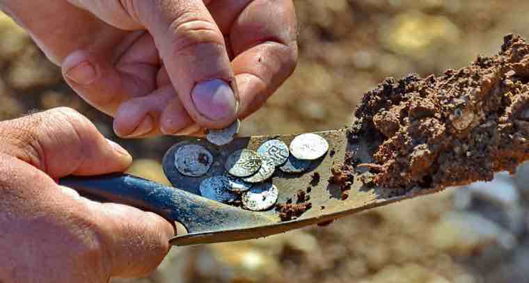 Обычно горшки и другие предметы домашней утвари, в которых хранились клады, разбивались, так что содержимое кладов рассеивалось в земле, постепенно превращаясь в россыпь. Нередко закопанные клады оказывались на территории сельскохозяйственных угодий, и после обработки полей машинами, монеты рассеивались на большой площади. Обнаружить такую россыпь монет или драгоценных украшений – большая удача для кладоискателя. А вот как распознать и извлечь такую находку читай в статье.